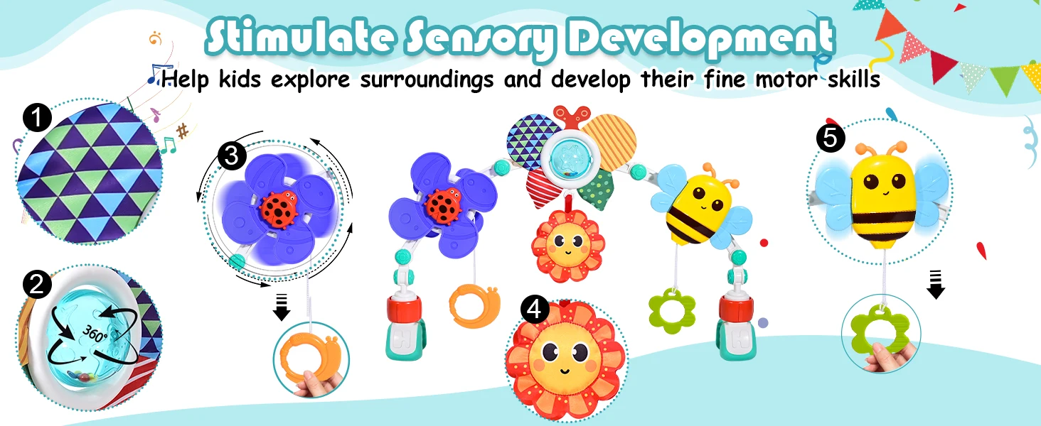 Hibility Baby Stroller Arch Toy Car Seat Toys Activity Mobile Musical Toys Ideal for Infant Boys Girls Sleep Baby Travel Toy
